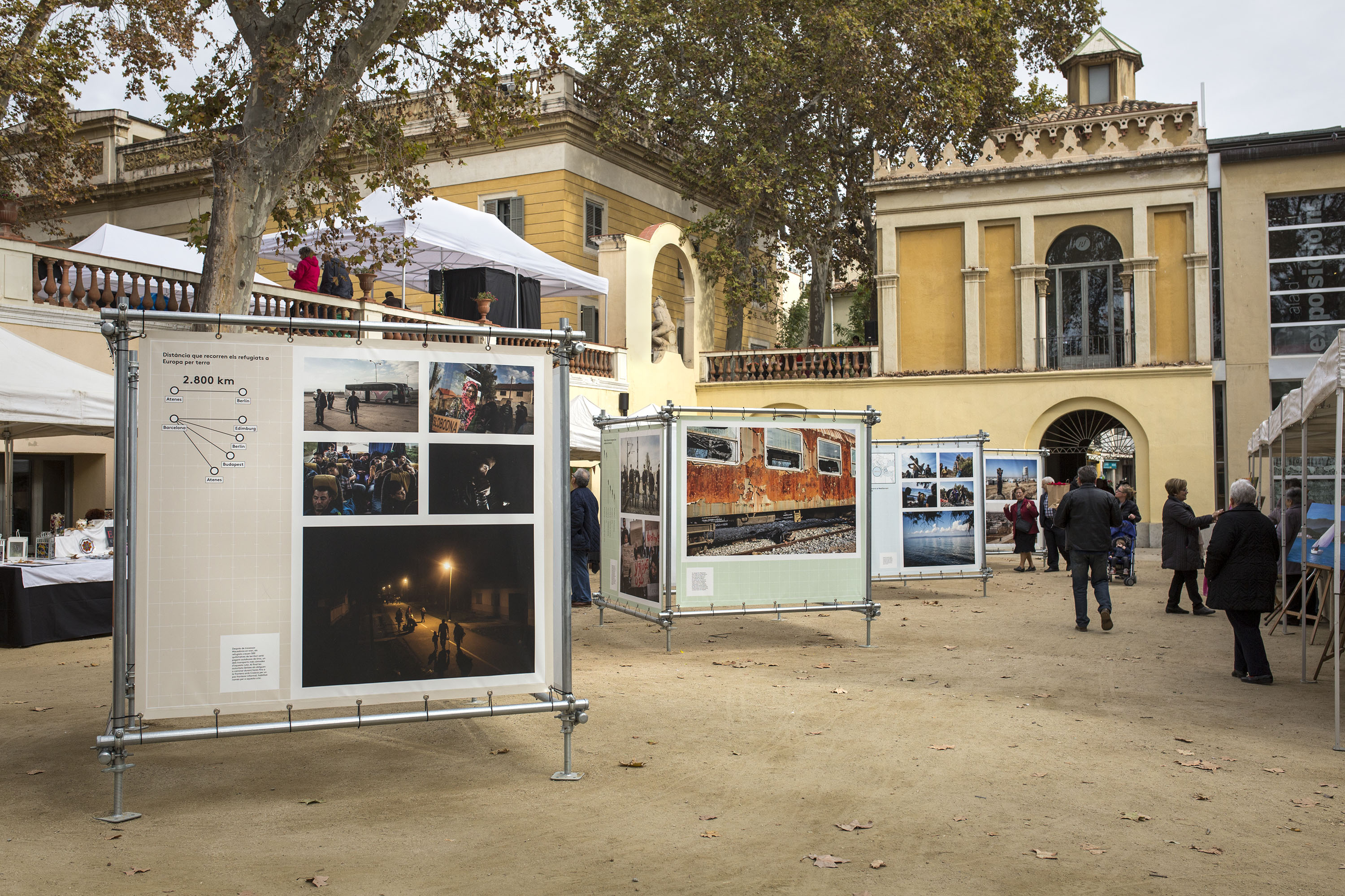 This exhibition combines a selection of images about the refugee crisis in 2015 and a series of infographics to help understand the dimension of the phenomenon in a visual and easy manner. An exhibition was created from the material which is capable of adapting to public spaces and is combined with interventions in the street with printed paper in black and white. This exhibition was on tour in various municipalities in Catalonia in 2016.